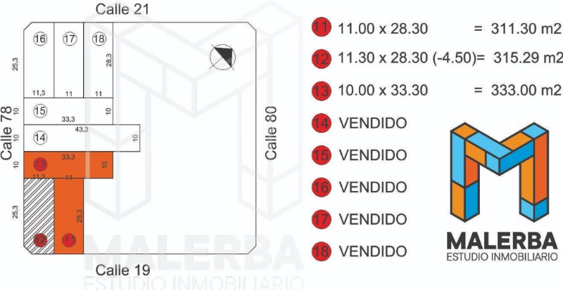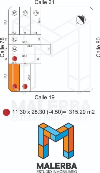 Los terrenos cuentan con muy buenas dimensiones y ubicación estratégica, con frente a calle 19 haciendo esquina con calle 78 brindando múltiples posibilidades de acceso y distribución.